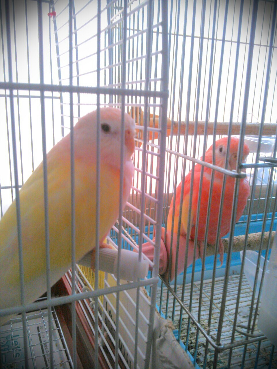 放鳥時にはたらこが近づくと怒るももちゃんですが、ケージごしではそんなに怒らないみたいです。