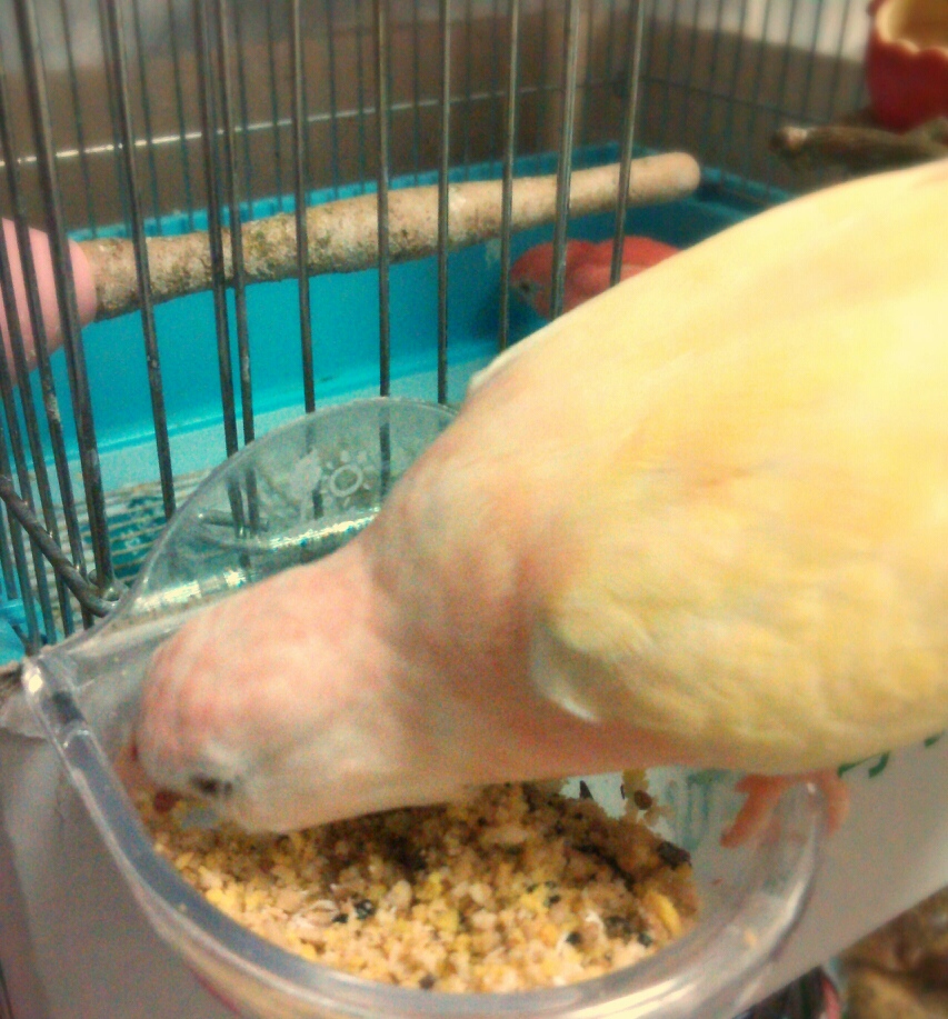 同居の練習として2つのカゴをドッキングして今2羽を一緒のスペースに入れていますが、家庭内別居のようで、1番上にももちゃん、1番下にたらこ、というおかしな景観が出来上がっています。
