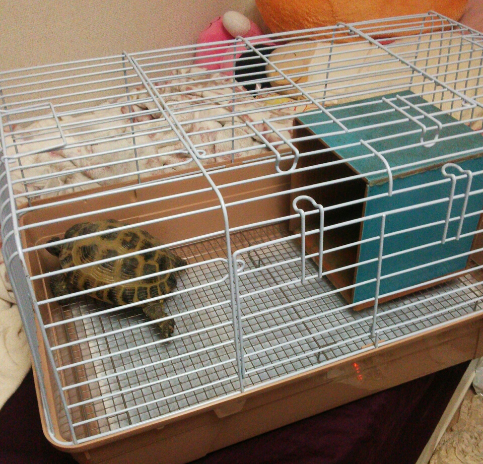 今までカメケージは衣装ケースに鳥かごでいうフンキリ網のようなモノを入れて使っていたのですが、夏に臭いが部屋にこもってしまうので外に出していたら今までの数年分の劣化が一気に加速してしまったようで直径20センチほどの大きな穴が開いたというか割れてしまいました。