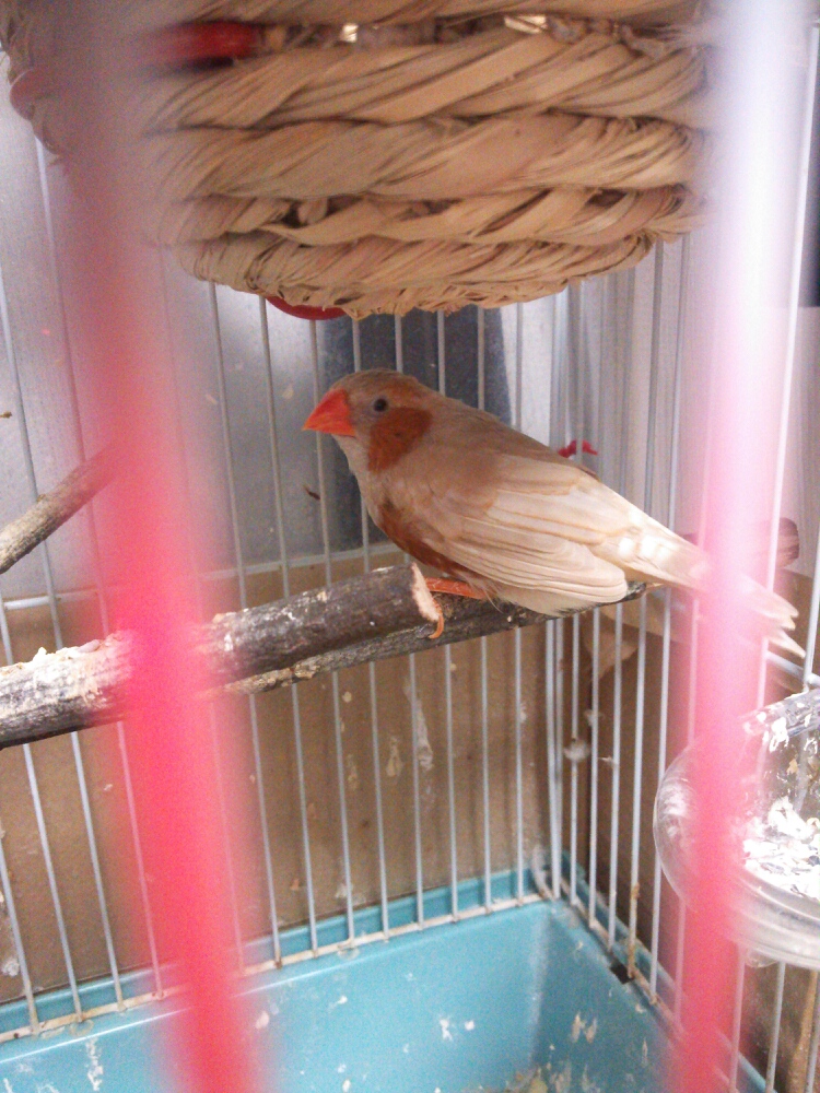 キンカチョウという文鳥よりもずっと小さいフィンチで鳴き声がとても可愛いです。