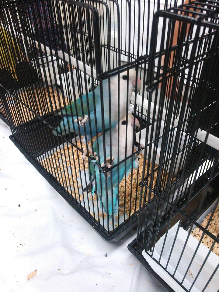 ホワイトフェイスのコザクラインコかな?この子たちがとても綺麗な色で魅力的でした。